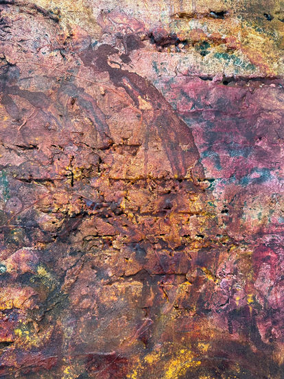 Charcoal, chalk, acrylic, oil, oil stick, cold wax and gold leaf on cardboard panels